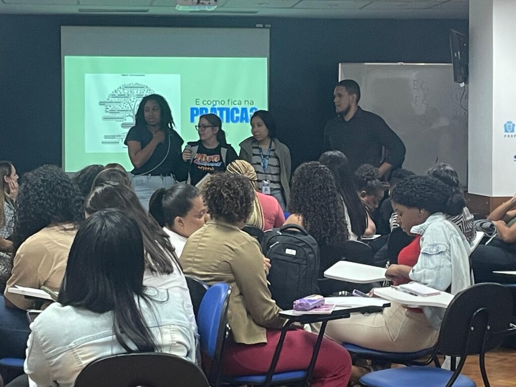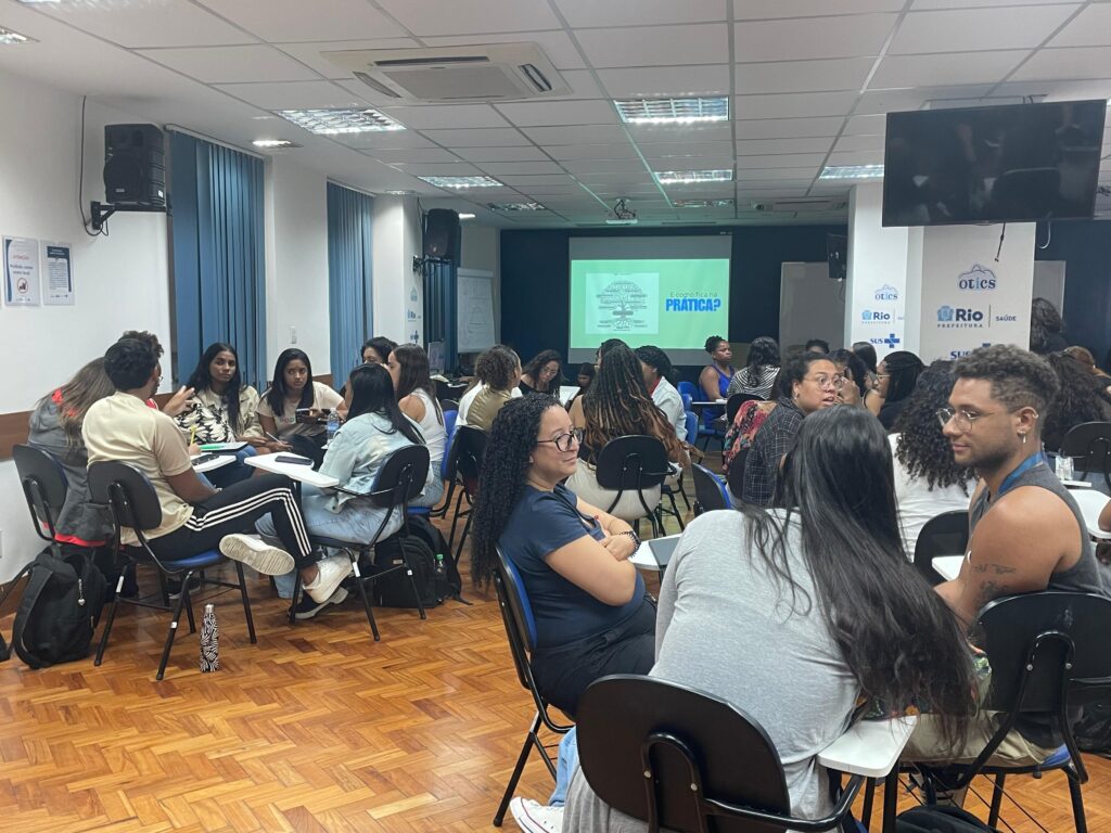 Profissionais de saúde da Atenção Primária à Saúde (APS) reuniram-se nesta segunda-feira, 10/11, no auditório Barbara Starfield do OTICS-Rio Sede para uma oficina sobre cuidado à saúde da população migrante e refugiada atendida pela APS no município do Rio de Janeiro. A atividade contou com as apoiadoras Raquel Oliveira e Fabiana Chicralla, Fernanda da Guia, do Ministério da Saúde, Ana Beatriz, assistente social do Centro de Referência e Atendimento Para Imigrantes (CRAI-Rio), Camila Athayde, psicóloga do Núcleo de Equidade Étnico-racial em Saúde (NEReS), Saulo Albuquerque, da Organização Internacional Para as Migrações (OIM) e Karla Ellwein, Coordenadora de Integração Local do Programa de Atendimento a Refugiados e Solicitantes de Refúgio da Cáritas – Rio de Janeiro.