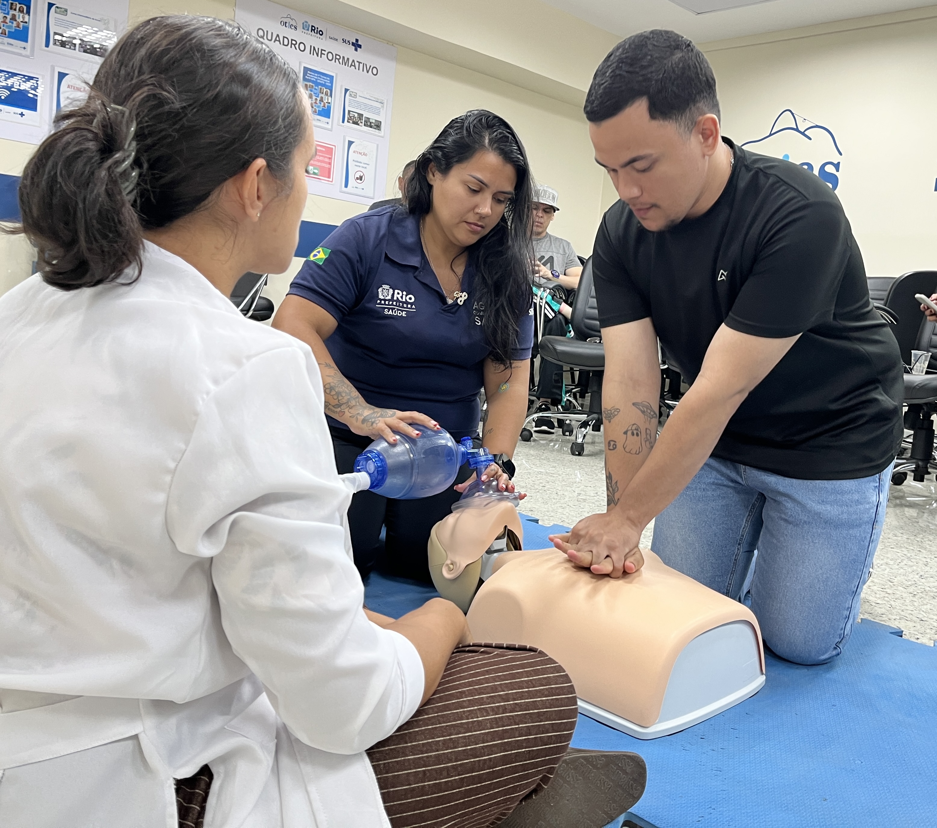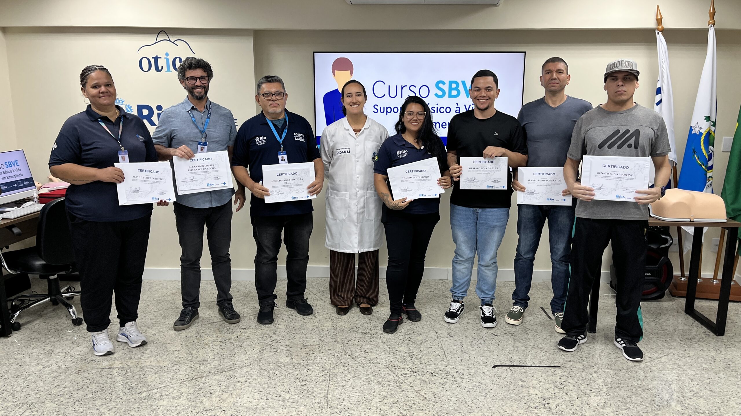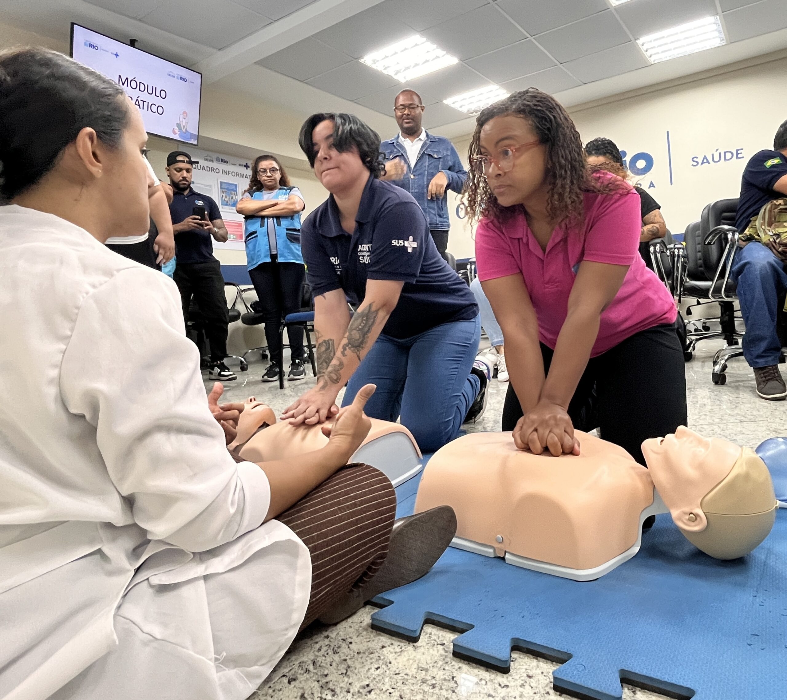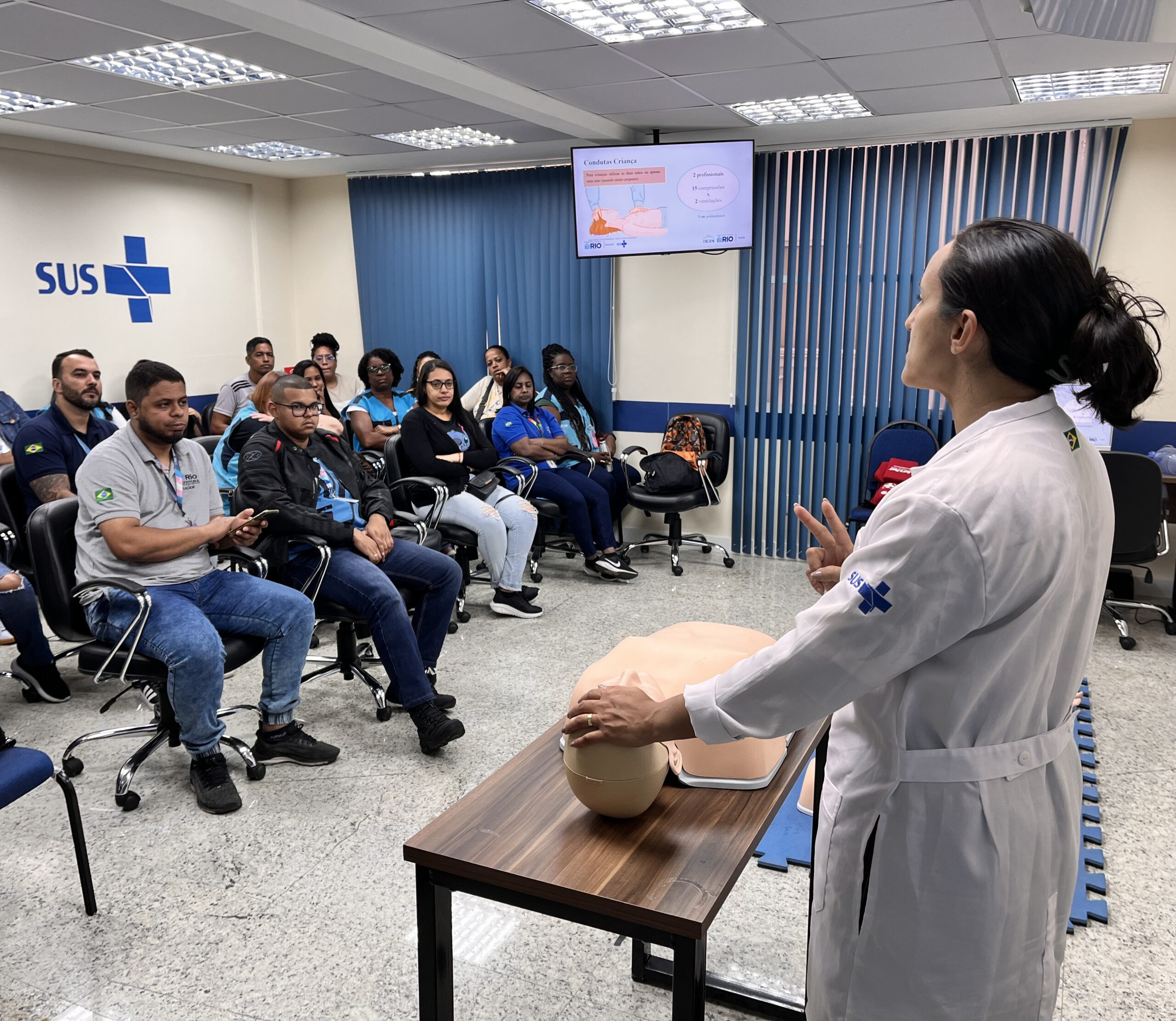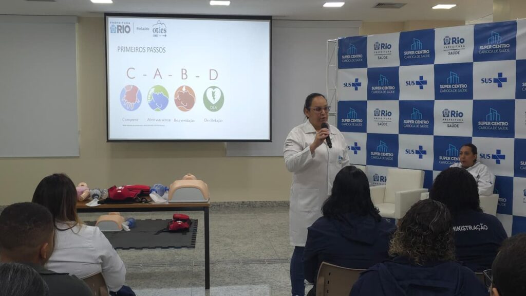 A 97ª turma do Curso de Suporte Básico à Vida em Emergências (SBVE) foi ministrada na tarde desta quarta-feira, 29 de outubro de 2025, na Sala Multiuso da OTICS-RIO Souza Aguiar. Como fruto da parceria entre a Rede OTICS/SMS-RJ e o Núcleo de Formação Profissional, Pesquisa e Educação Permanente (NUFOPEP/RioSaúde).