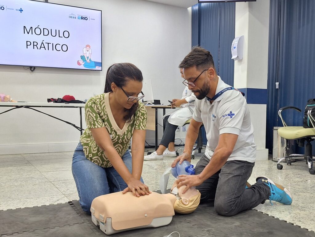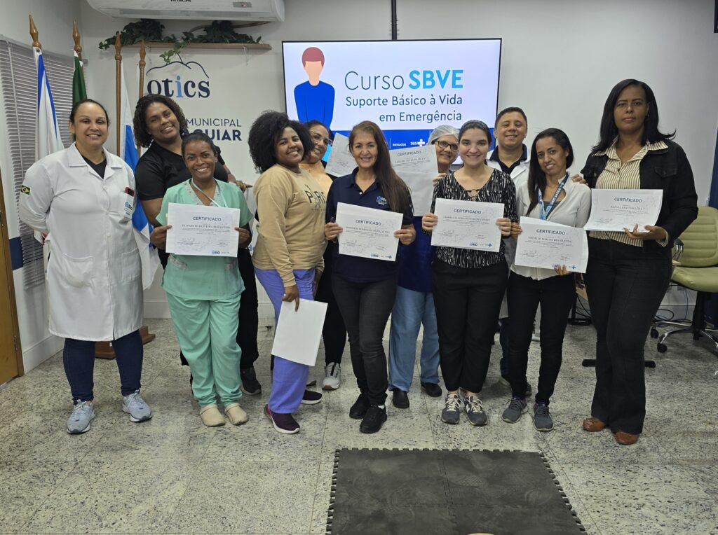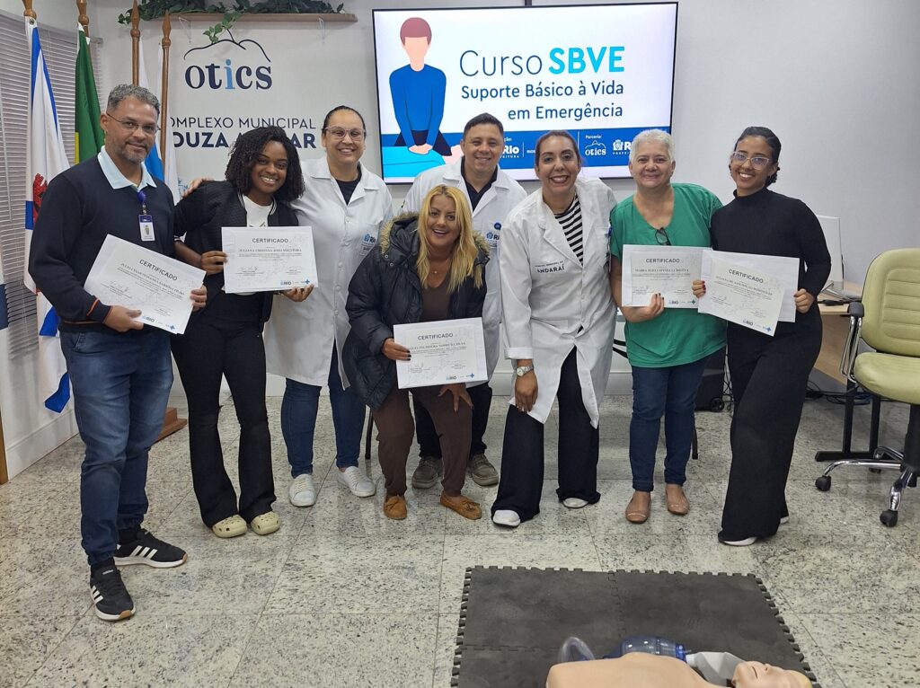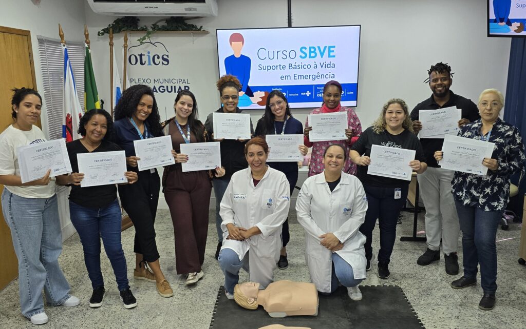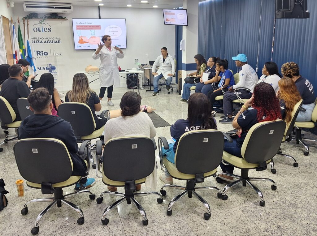 A 87ª turma do Curso de Suporte Básico à Vida em Emergências (SBVE) foi ministrada na tarde desta terça-feira, 30 de setembro de 2025, na Sala Multiuso da OTICS-RIO Souza Aguiar. Como fruto da parceria entre a Rede OTICS/SMS-RJ e o Núcleo de Formação Profissional, Pesquisa e Educação Permanente (NUFOPEP/RioSaúde).