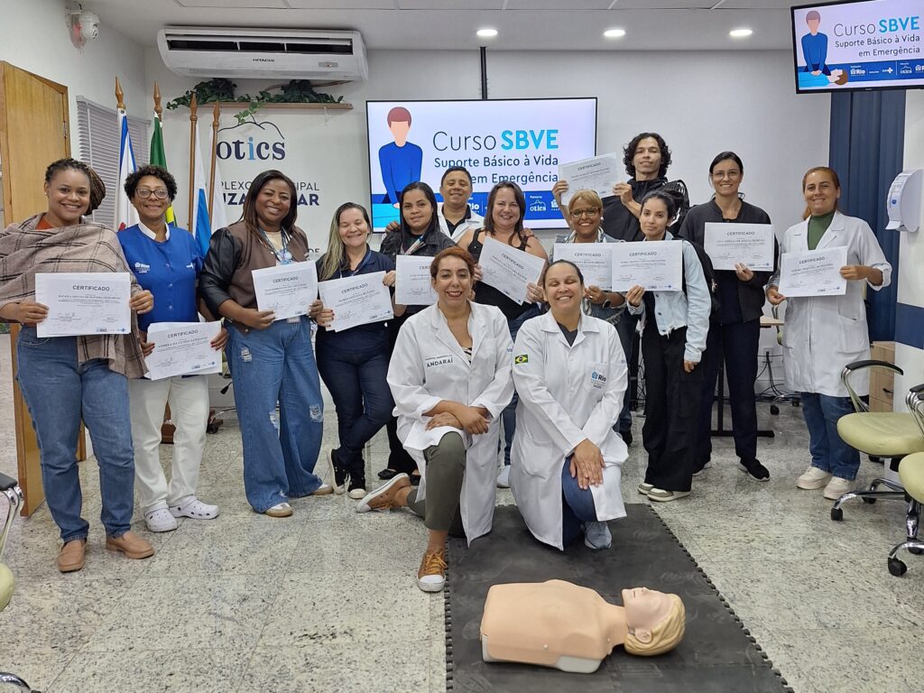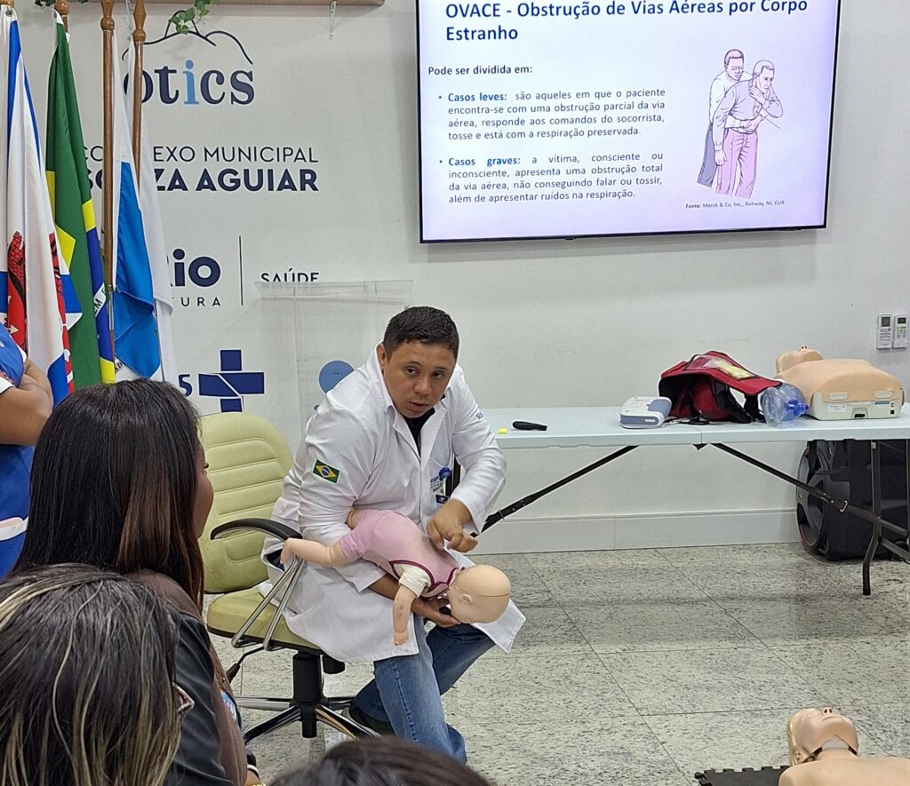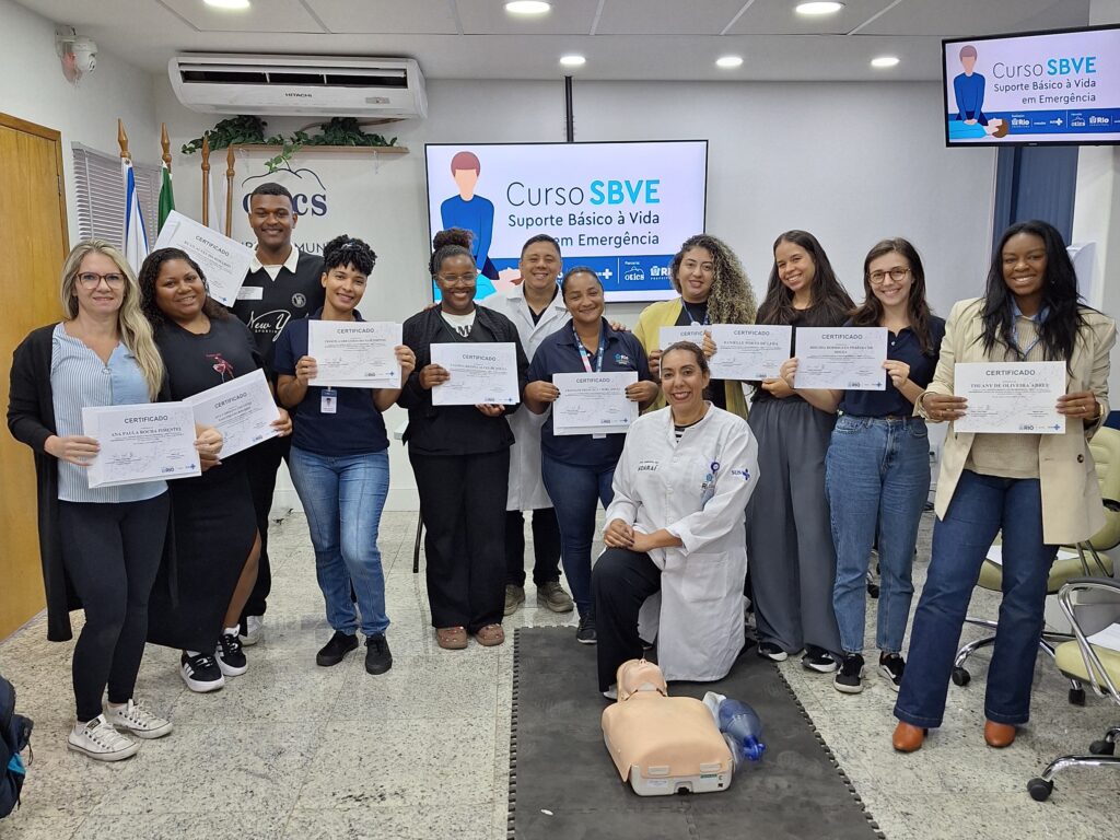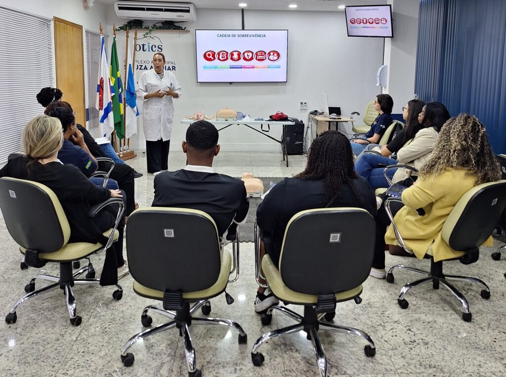 A 87ª turma do Curso de Suporte Básico à Vida em Emergências (SBVE) foi ministrada na tarde desta terça-feira, 30 de setembro de 2025, na Sala Multiuso da OTICS-RIO Souza Aguiar. Como fruto da parceria entre a Rede OTICS/SMS-RJ e o Núcleo de Formação Profissional, Pesquisa e Educação Permanente (NUFOPEP/RioSaúde).