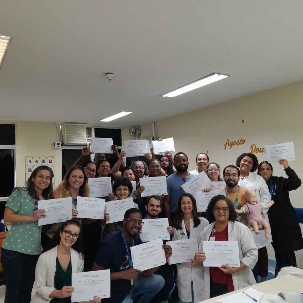 Estiveram presentes 19 profissionais da saúde, sendo 3 Enfermeiras, 6 Técnicos em Enfermagem, 2 Assistentes Administrativos, 1 Assistente de Comunicação, 3 Fonoaudiólogas, 2 Nutricionistas, 1 Farmacêutico e 1 Fisioterapeuta, lotados nas seguintes unidades: Hospital Municipal Lourenço Jorge e Hospital Municipal Souza Aguiar.