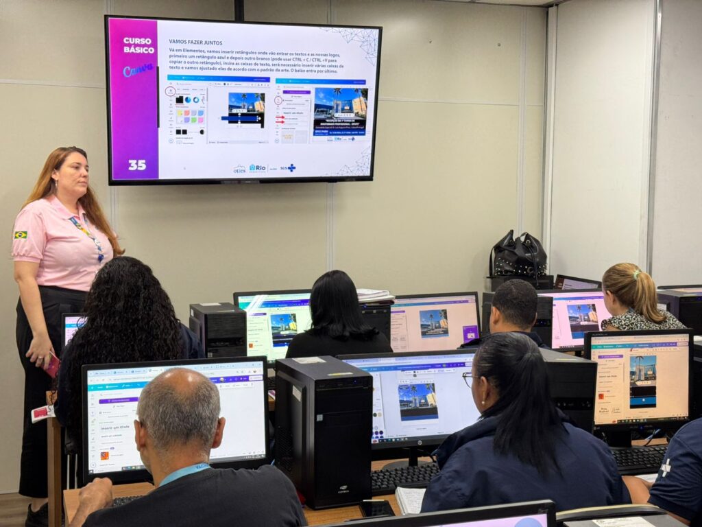A 2° turma de 2025 do ‘Curso Básico de Canva’ foi realizada nesta sexta-feira, 17 de janeiro, no laboratório Barbara Starfield, localizado nas dependências da Estação OTICS-Rio Pinel em Botafogo. Este curso está sendo oferecido pela Secretaria Municipal de Saúde do Rio de Janeiro em parceria com a Rede OTICS-Rio com o objetivo de capacitar os profissionais do SUS Carioca a utilizarem os recursos principais da ferramenta Canva para elaboração de cards e apresentações institucionais. A atividade contou com a mediação dos integrantes da Equipe Otics-Rio, Lorrayne Estácio e Victor Wigand e com a participação de 17 colaboradores lotados nas seguintes unidades: CAP 1.0, CF Carioca, CF Edney Canazaro de Oliveira, CF Estácio de Sá, CF Fernando A. Braga Lopes, CF Gerson Bergher, CF Medalhista Olímpico Ricardo Lucarelli Souza, CF São Sebastião, CF Sérgio Nicolau Amin, CMS Cecília Donnangelo, CMS Eliza Abrantes, CMS Milton Fontes Magarão, CMS Salles Netto e Hospital Municipal do Andaraí.