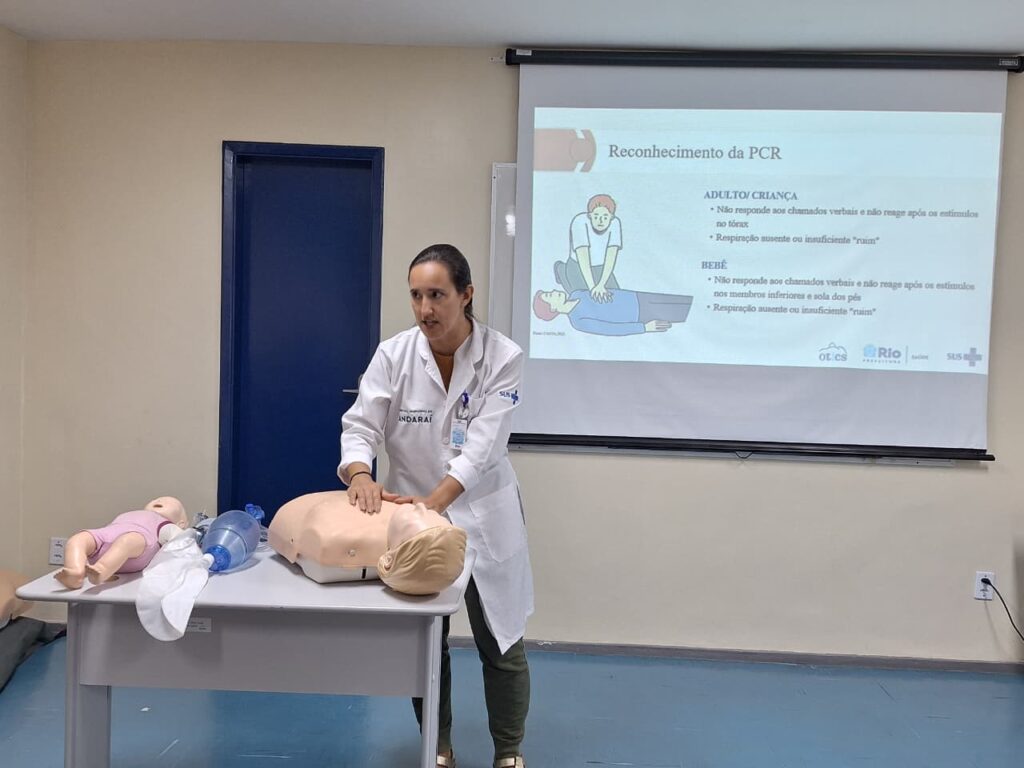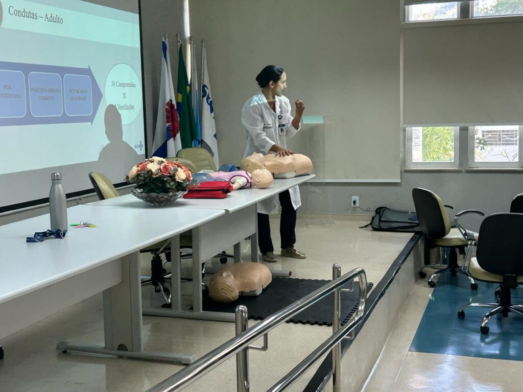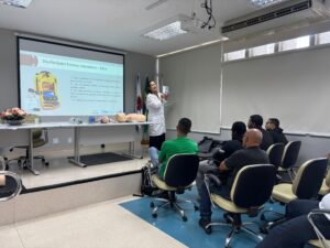 Na aula foram ministrados módulos com ênfase em Acolhimento, Comunicação, Introdução ao Sistema Único de Saúde (SUS), Leis e Regras da Maternidade, Segurança do Paciente e Princípios Fundamentais de Suporte Básico à Vida em Emergência (SBVE). Na ocasião, 13 maqueiros das unidades municipais foram certificados.
