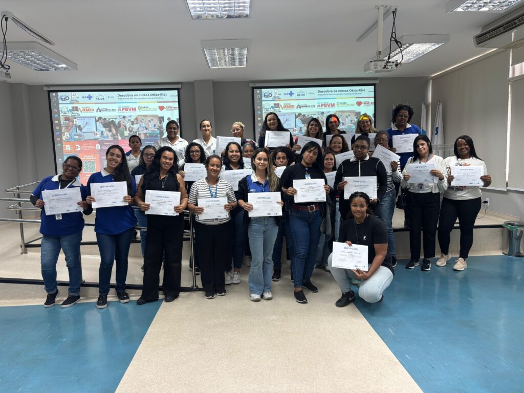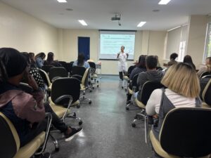 No dia 17 de novembro de 2025, sétimo dia do mutirão “Rocha Fará” em Campo Grande, a Rede OTICS-Rio/SMS-RJ, em parceria com o NUFOPEP/RioSaúde, realizou a 21ª turma do Curso de Orientações Básicas para Recepcionistas (OBAR), no turno da tarde. A atividade foi voltada aos profissionais de saúde do Hospital Municipal Rocha Faria.