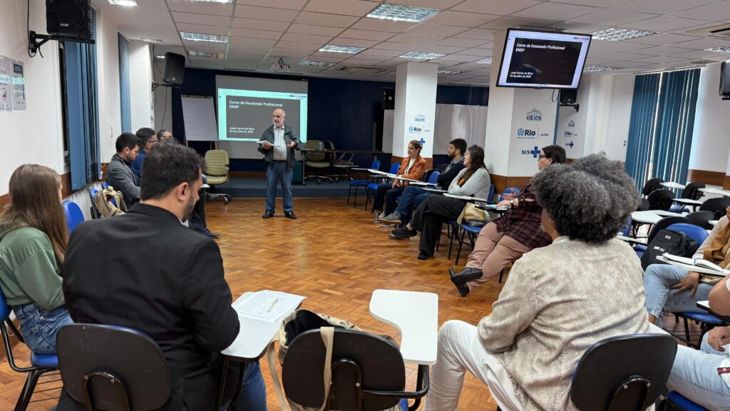 Na manhã de sexta-feira, 12 de setembro de 2025, no Auditório da Estação OTICS-Rio, foi realizada Aula do Doutorado Profissional em Atenção Primária à Saúde (DPAPS) da Escola Nacional de Saúde Pública Sergio Arouca (ENSP/Fiocruz), em parceria com a Secretaria Municipal de Saúde (SMS-Rio).