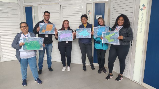 O Gerente Gustavo Silva e os agentes comunitários atualizaram as microáreas da equipe Campo de Santana, finalizando a atualização do mapa territorial da unidade.