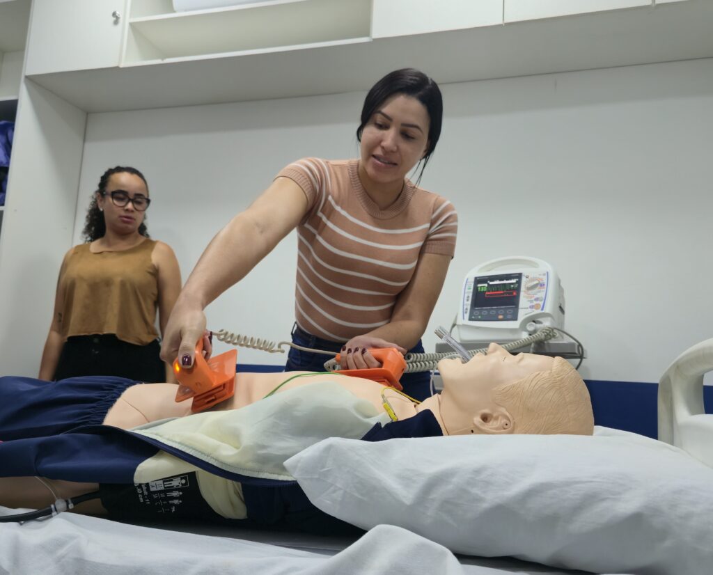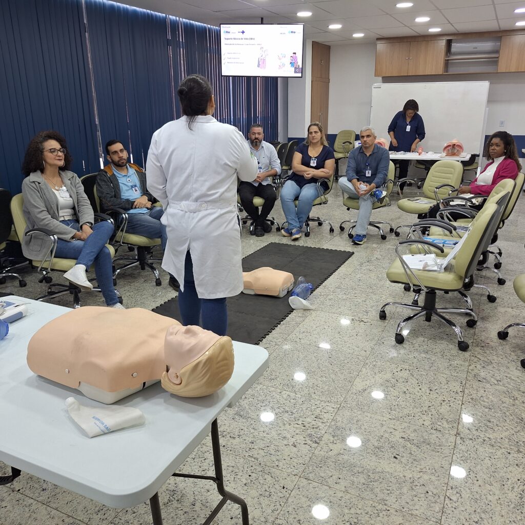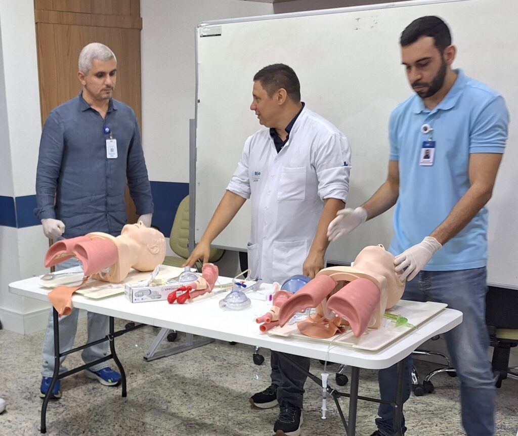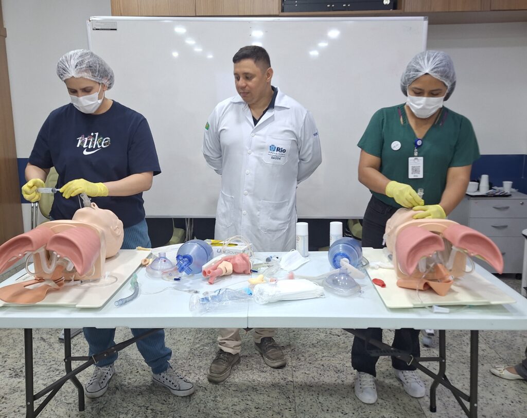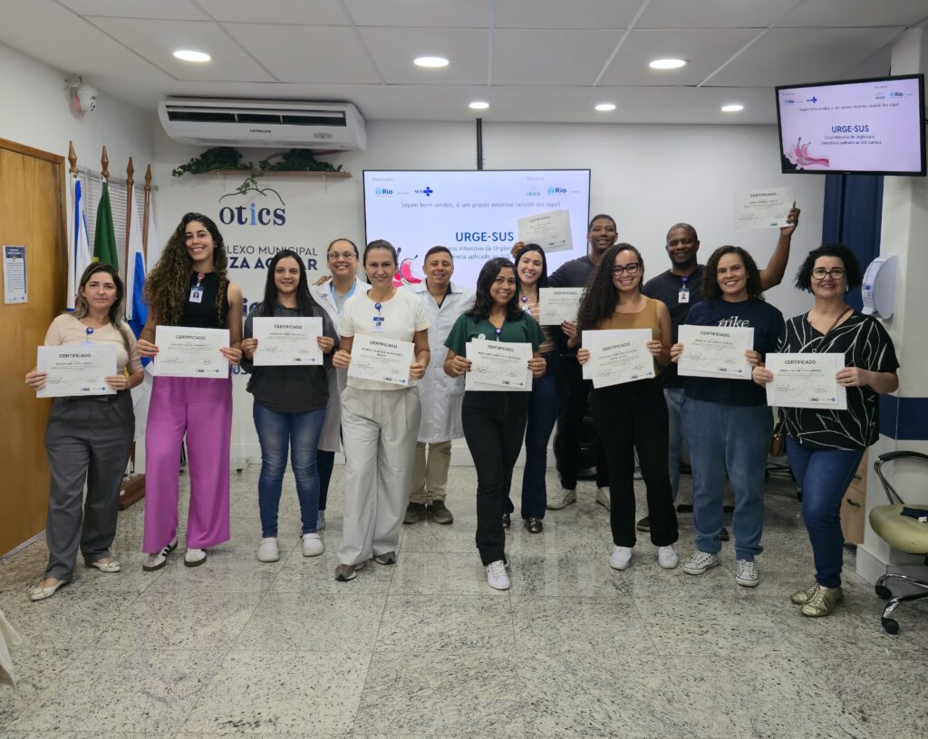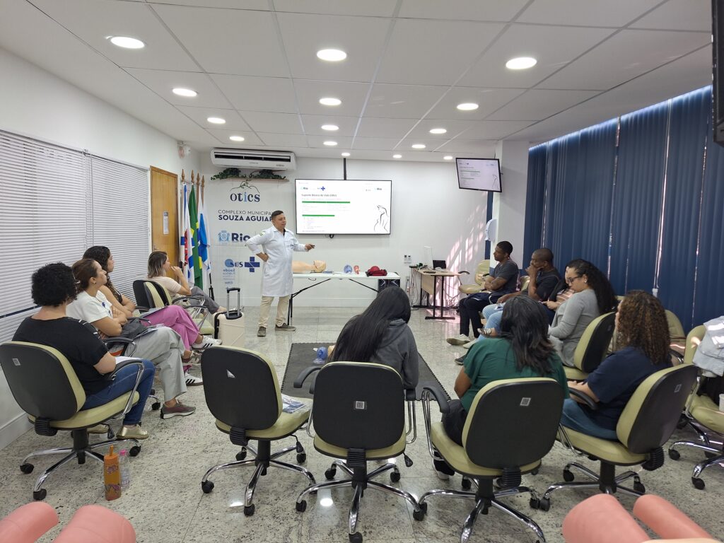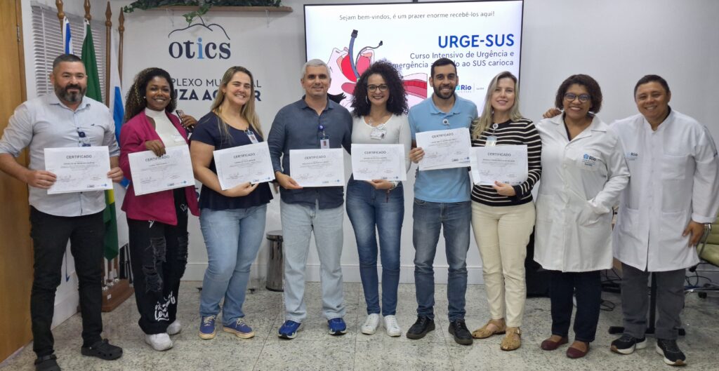 A 19ª turma do Curso Intensivo de Urgência e Emergência aplicado ao SUS Carioca – URGE-SUS foi ministrada nesta terça-feira, 11 de novembro de 2025, na Sala Multiuso e no Box de Simulação da OTICS-Rio Souza Aguiar. O curso foi criado pela OTICS/SMS-RJ, em parceria com o Núcleo de Formação Profissional, Pesquisa e Educação Permanente (NUFOPEP/RioSaúde), e destina-se à atualização e aprimoramento dos enfermeiros que atuam nas emergências das unidades de saúde do município do Rio de Janeiro.