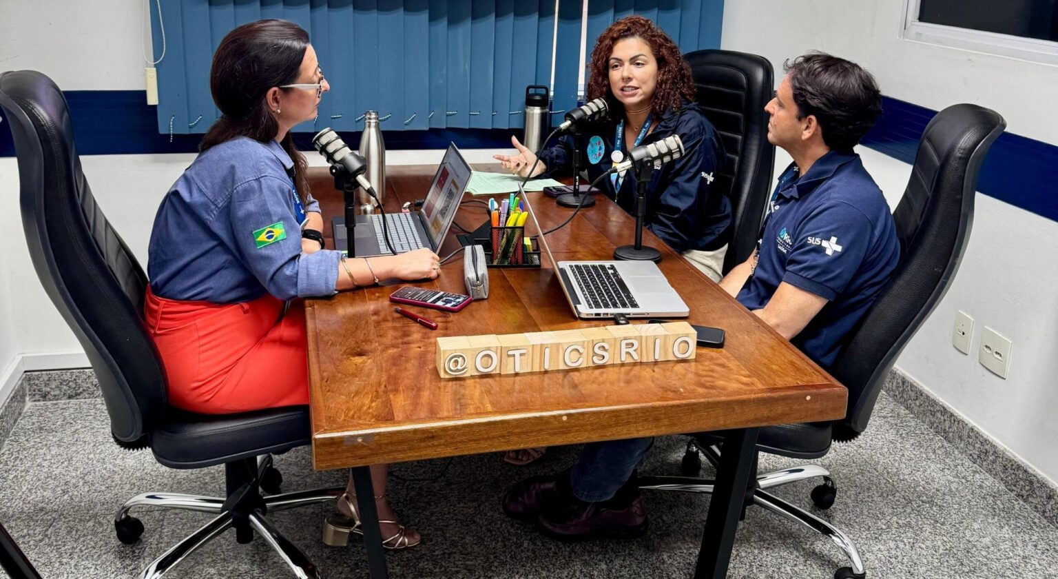 A gravação do 4º episódio de 2025 do OTICSCAST, um projeto do Observatório de Tecnologias de Informação e Comunicação em Sistemas e Serviços de Saúde